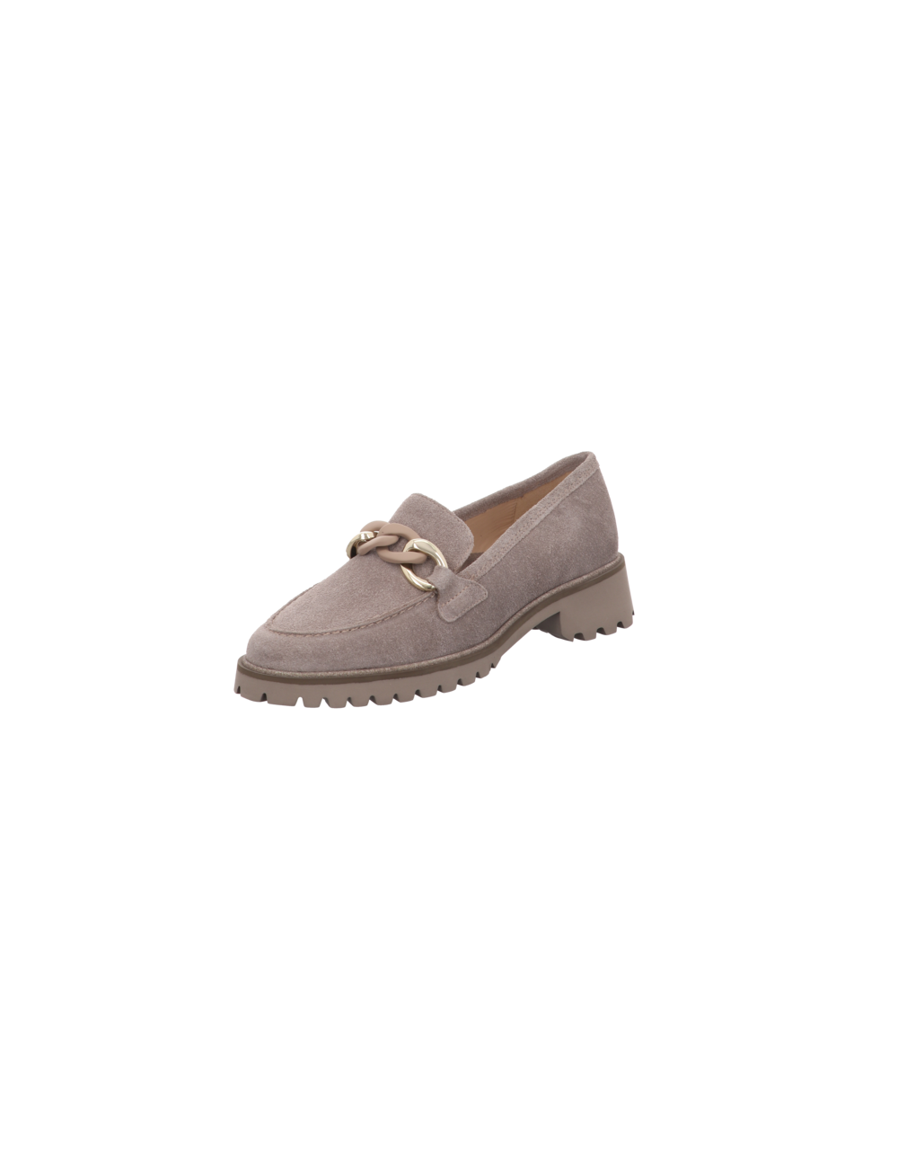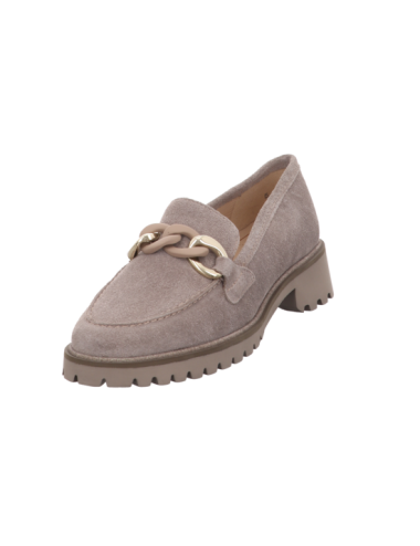 Loafer in beigen Rauhleder mit Gummisohle.