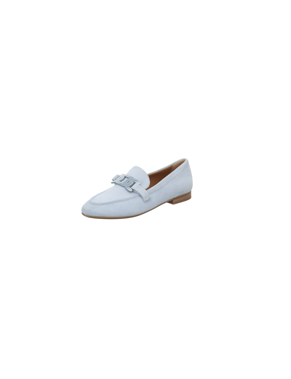 Loafer in hellblauen Rauhleder mit Gummisohle.