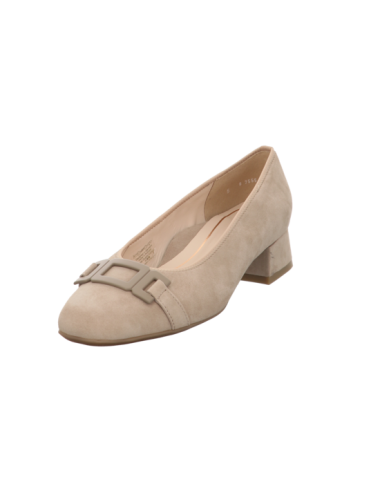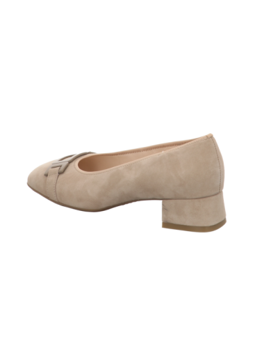 Slipper in beigen Rauhleder mit Gummisohle.