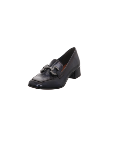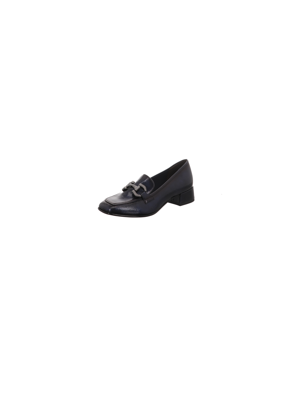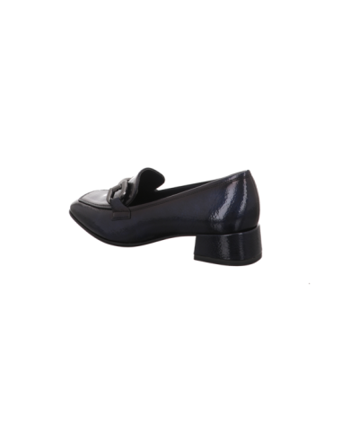 Slipper in blauer Lacklederoptik mit Gummisohle.