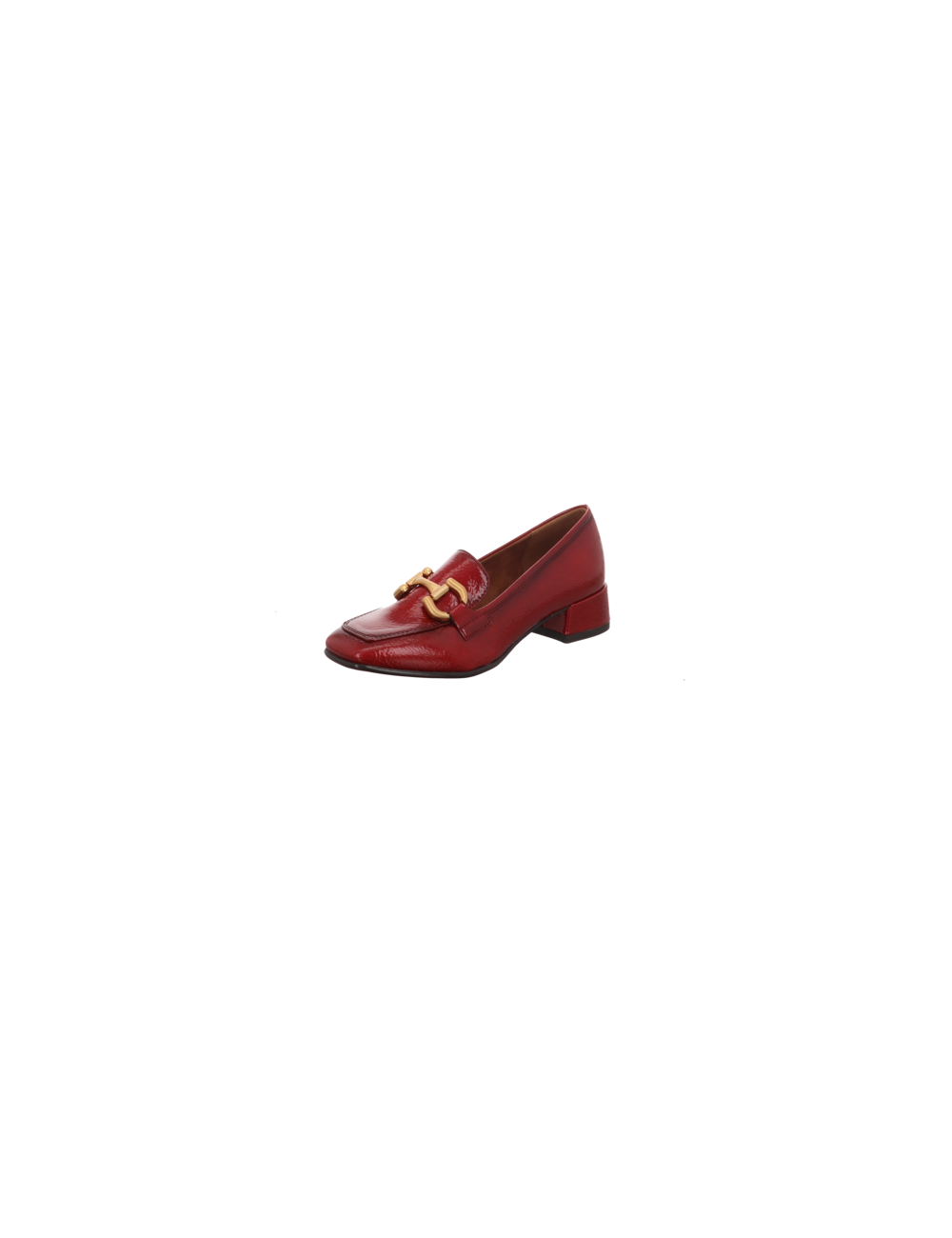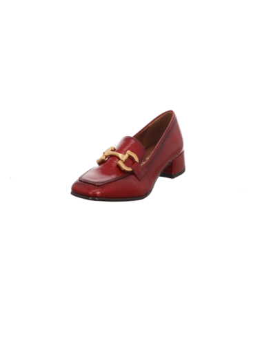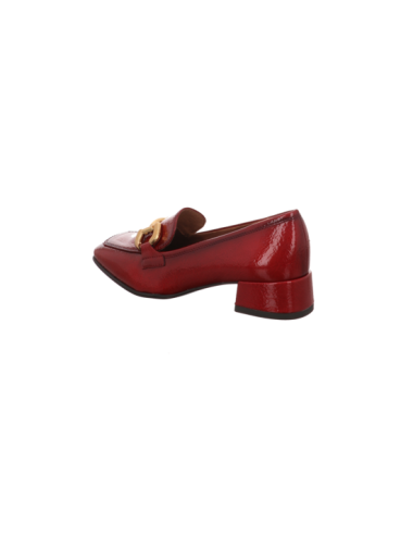 Slipper in roter Lacklederoptik mit Gummisohle.