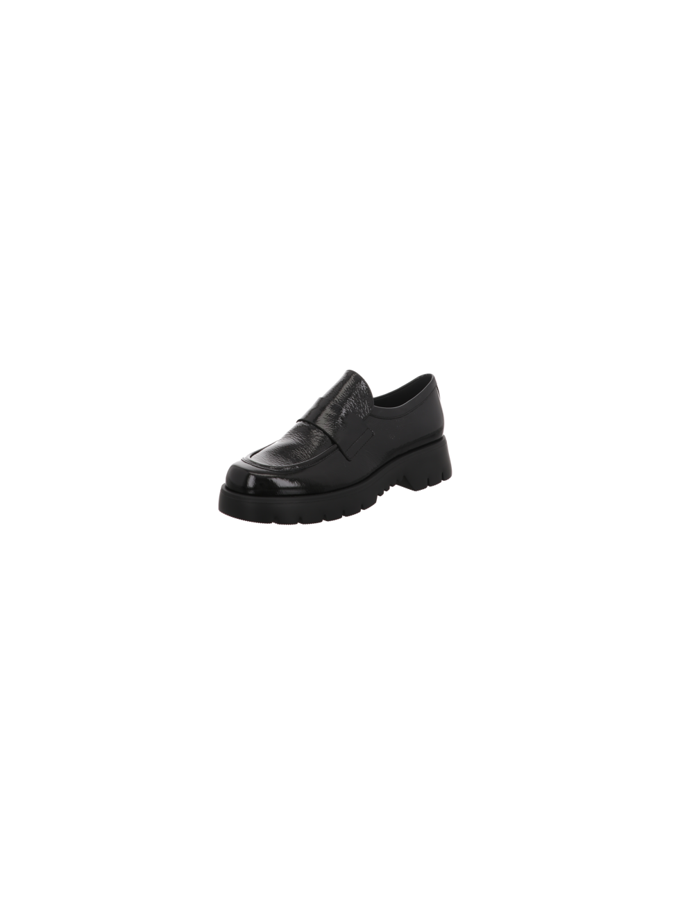 Loafer in schwarzen Lackleder mit Plateaugummisohle.