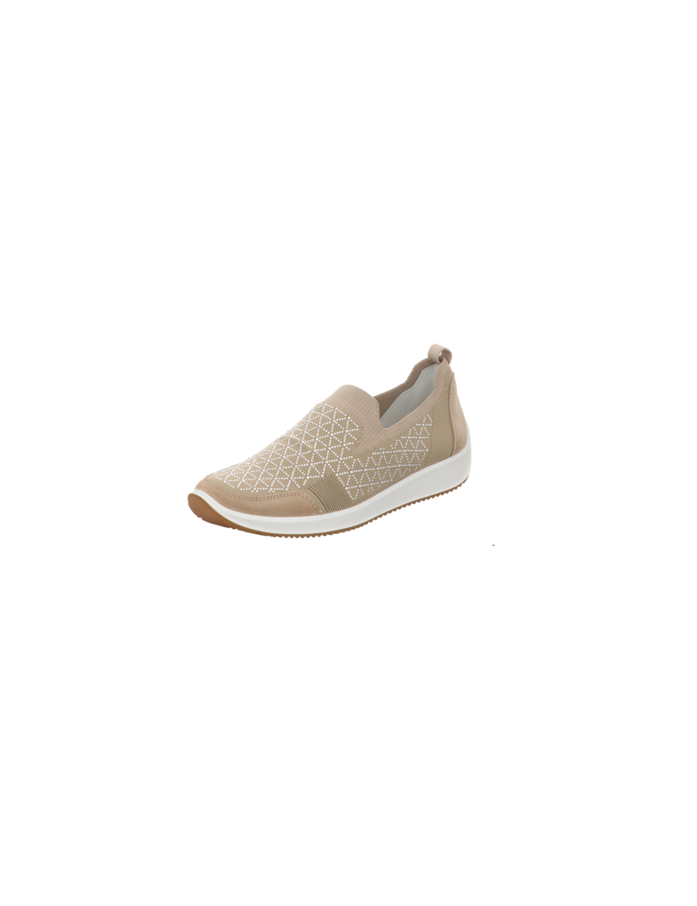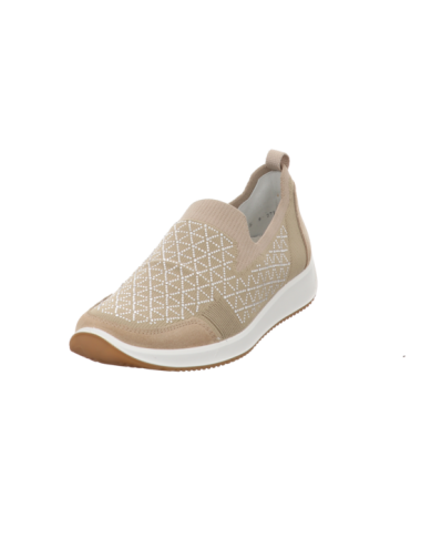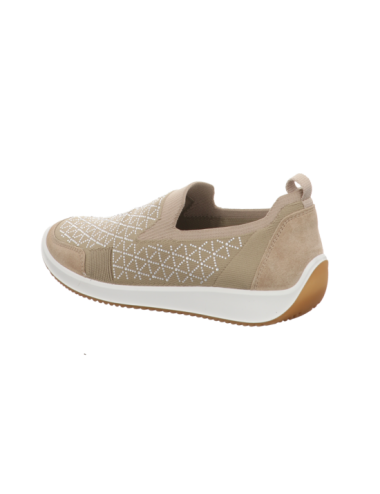 Slipper in beigen Textil mit Gummisohle.