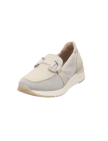 Loafer in silbernen Glattleder mit Gummisohle.