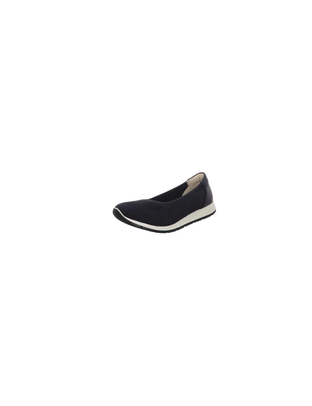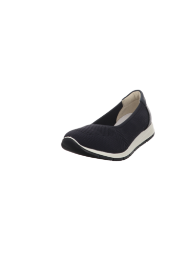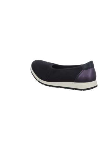 Slipper in blauen Textil mit Gummisohle.