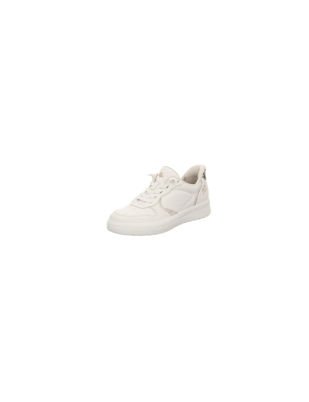 Sneaker in weisser Glattlederoptik mit Gummisohle.