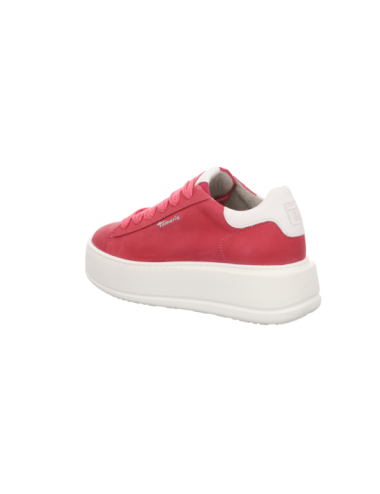 Sneaker in pinken Rauhleder mit Plateaugummisohle.