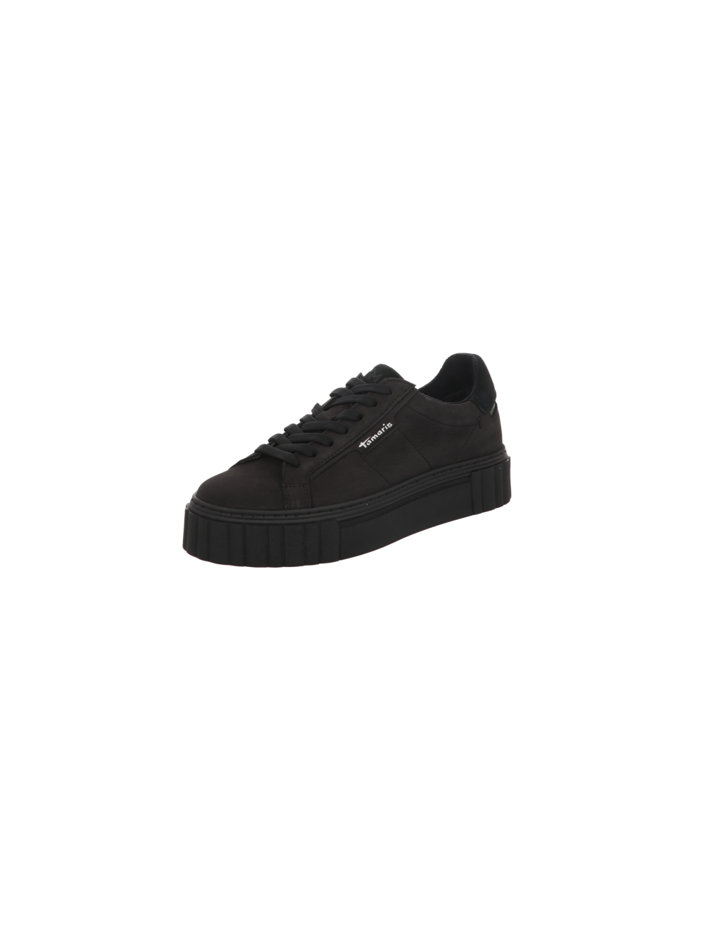 Sneaker in schwarzen Rauhleder mit Plateaugummisohle.