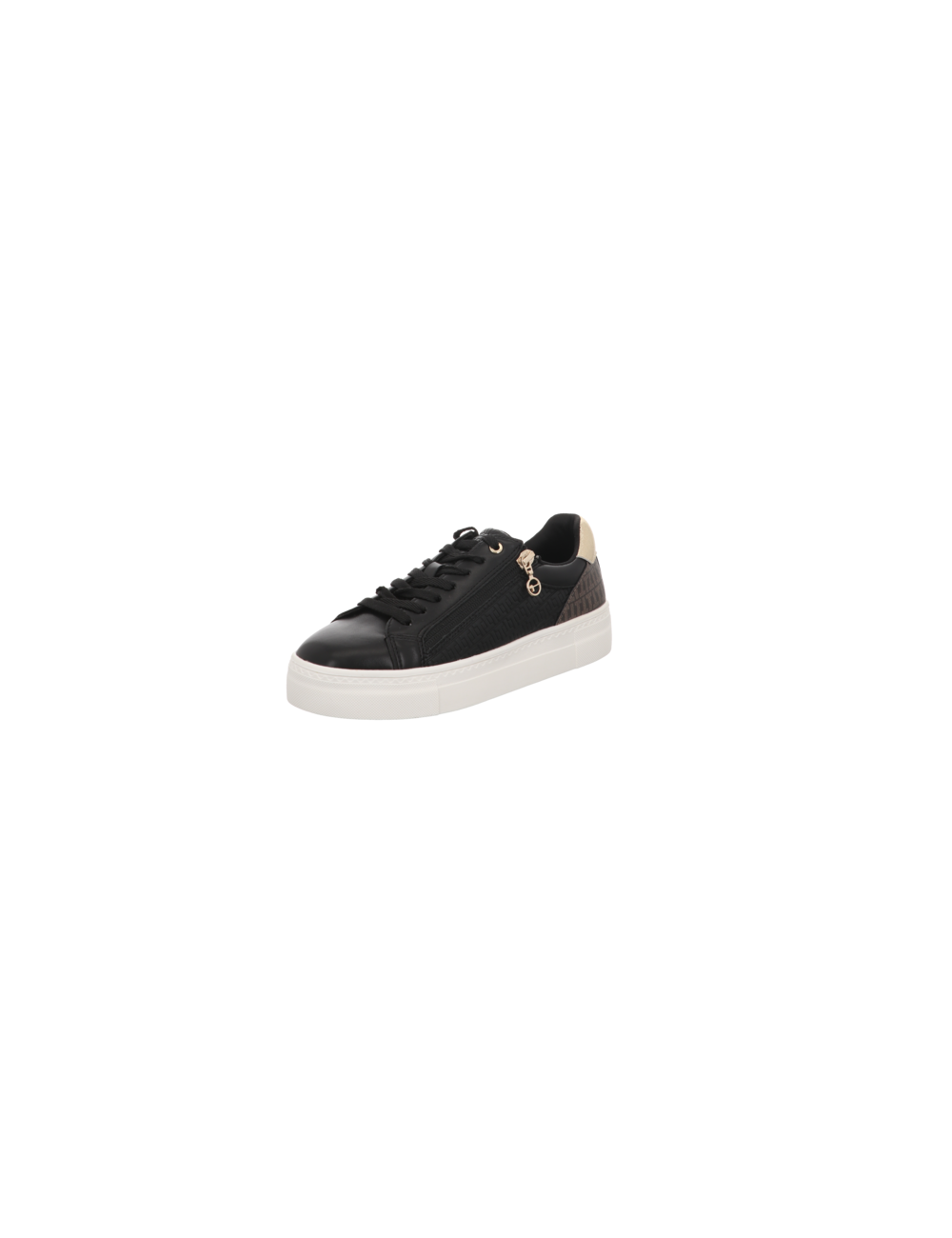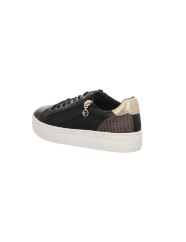 Sneaker in schwarz kombinierter Glattlederoptik mit Plateaugummisohle.