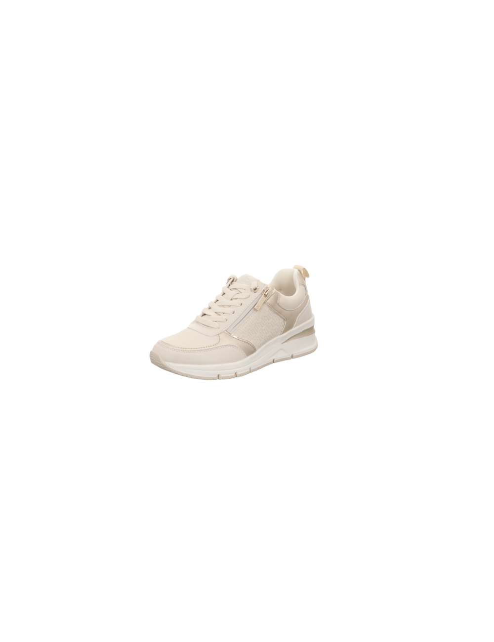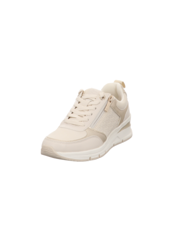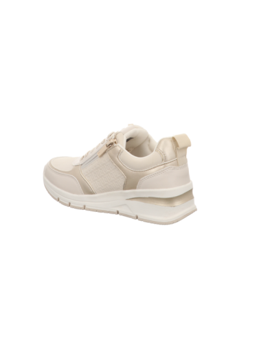 Sneaker in beiger Glattlederoptik mit Keilgummisohle.