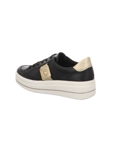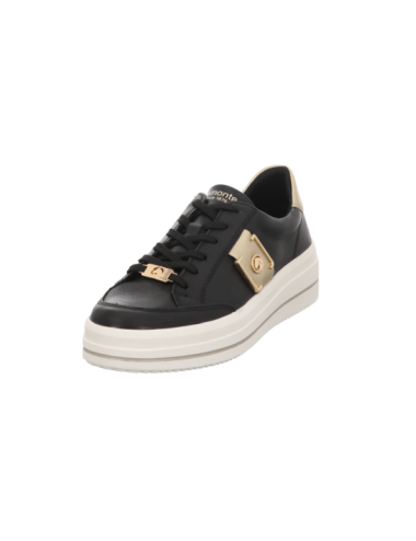 Sneaker in schwarz kombinierten Glattleder mit Plateaugummisohle.