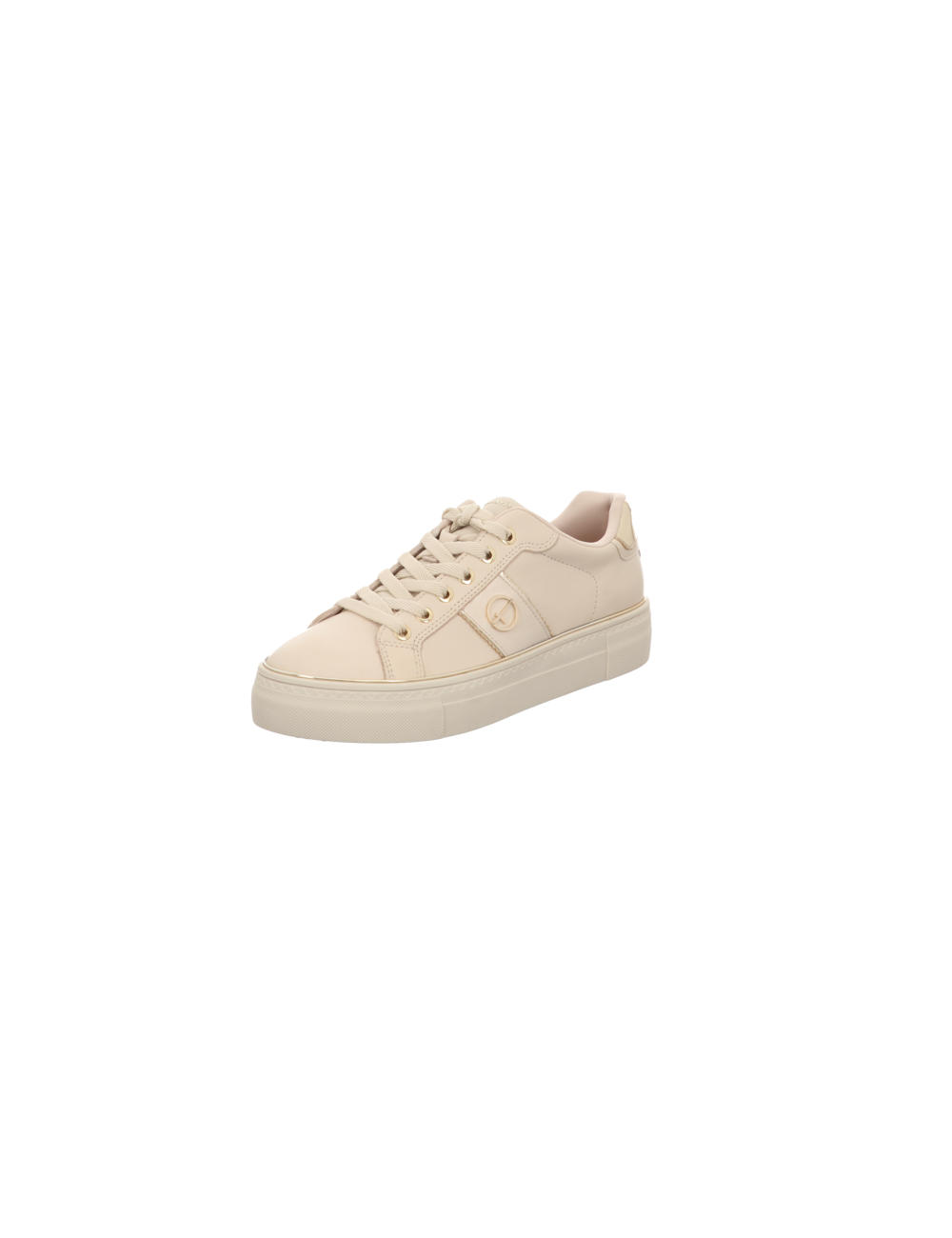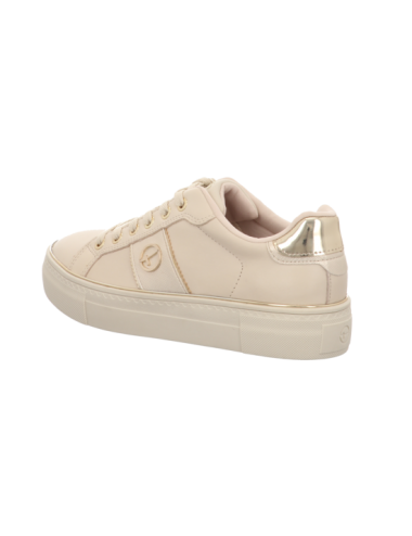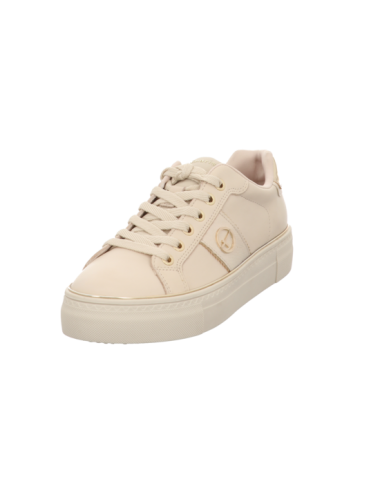 Sneaker in beigen Glattleder mit Gummisohle.