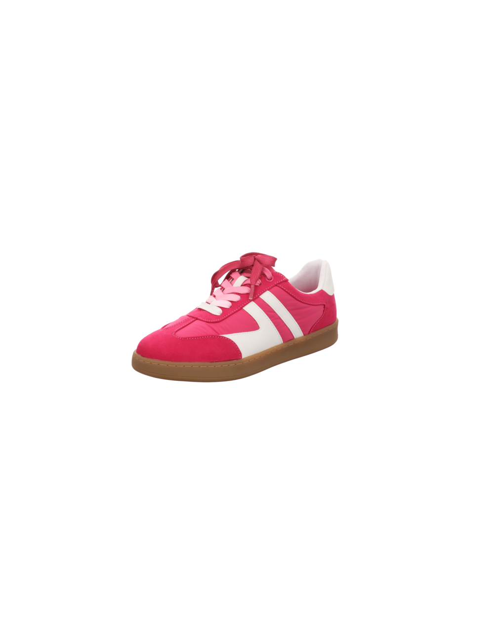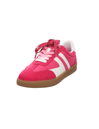 Sneaker in pinken Textil mit Gummisohle.