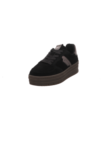 Sneaker in schwarz kombinierten Glattleder mit Gummisohle.