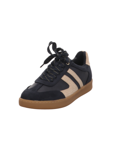 Sneaker in blau kombinierten Glattleder mit Gummisohle.