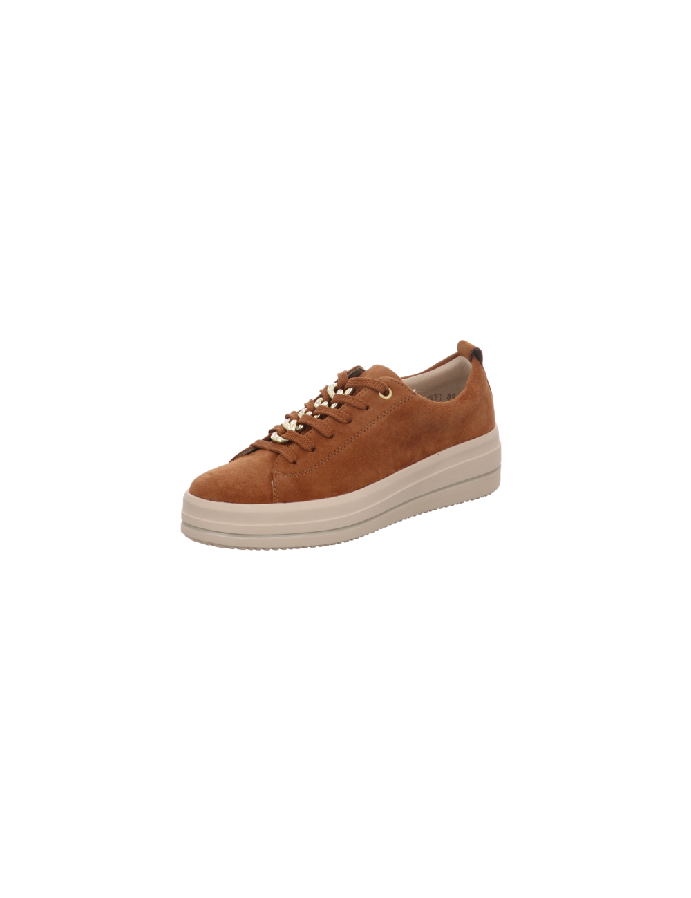 Sneaker in braunen Rauhleder mit Gummisohle.