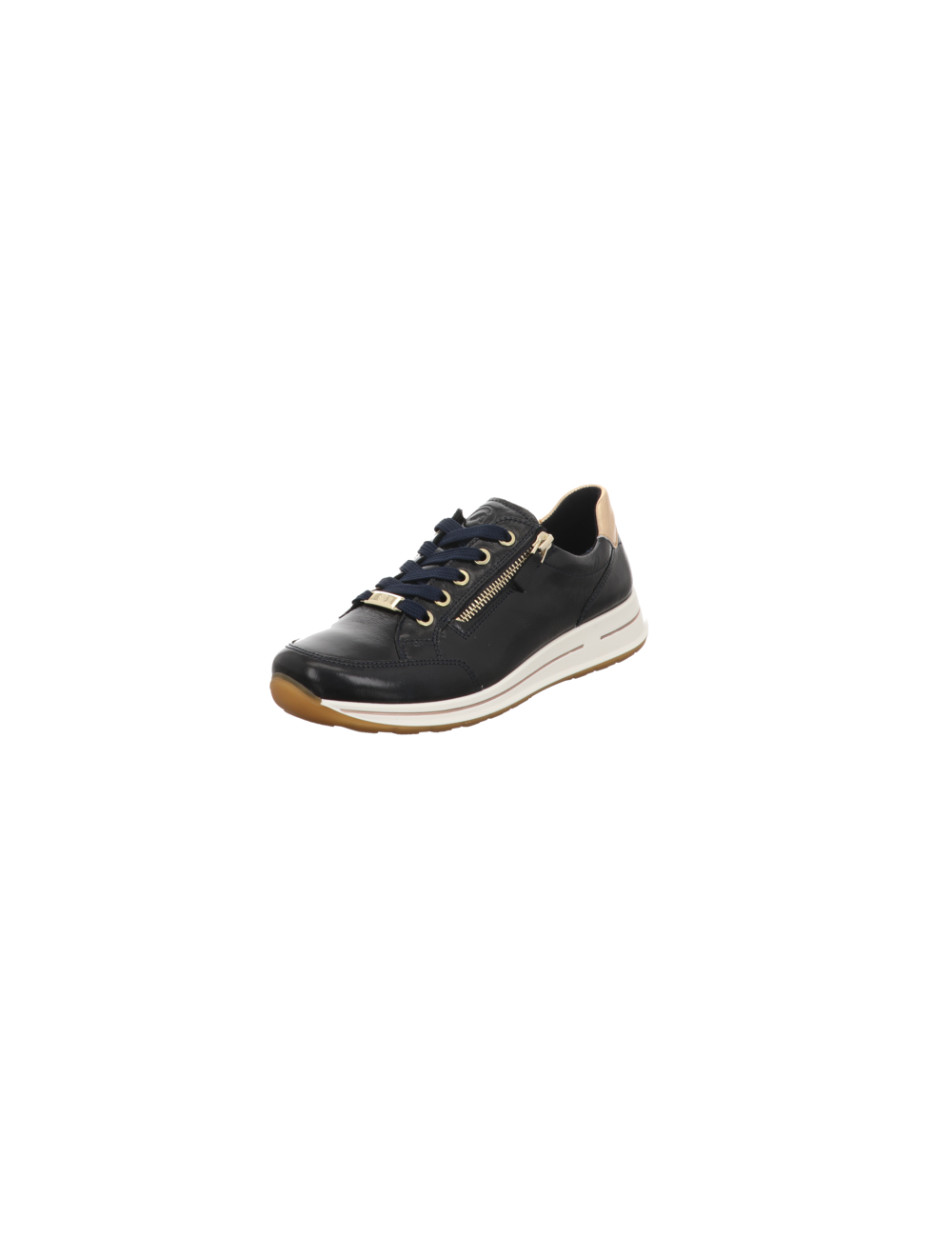 Sneaker in blau kombinierten Lackleder mit Gummisohle.