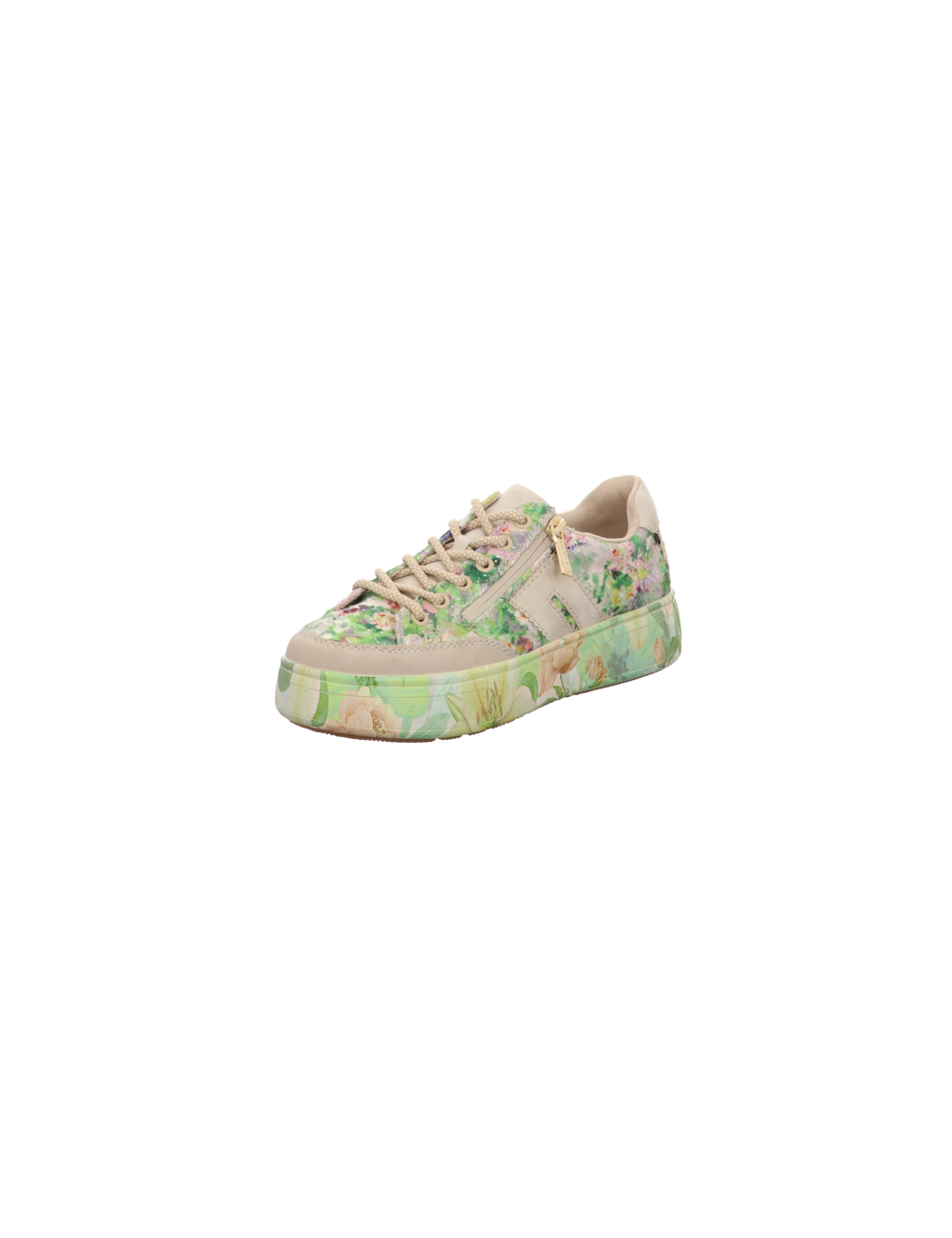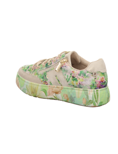 Sneaker in grün kombinierten Kunstleder mit Plateaugummisohle.