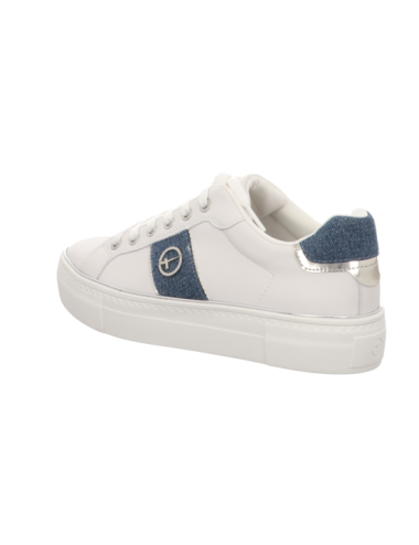 Sneaker in weiss kombinierten Glattleder mit Plateaugummisohle.