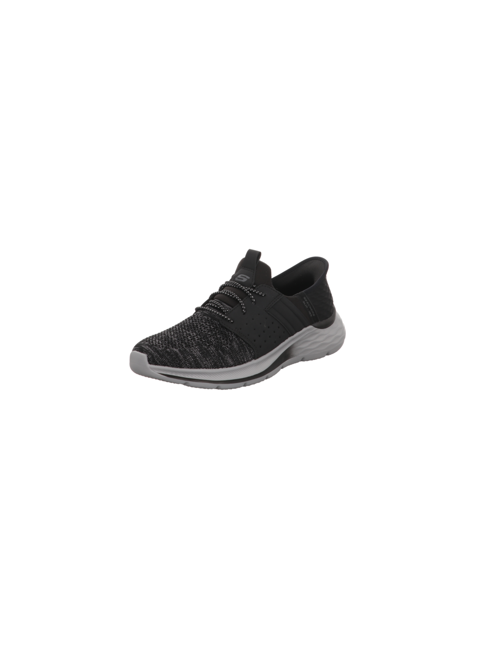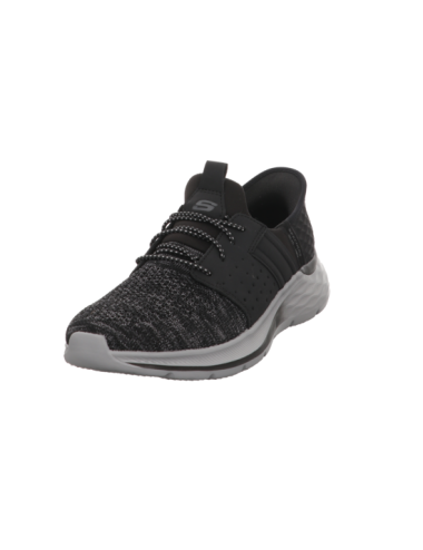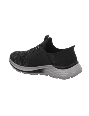 Slip Ins Sportschuh in schwrzen Textil mit Gummisohle.