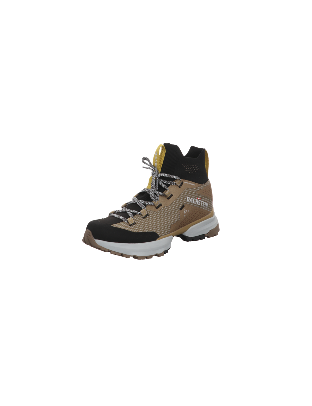 Bergschuh in braun kombinierten Textil mit Goretex - Membrane und Gummisohle. 100 % wasserdicht.