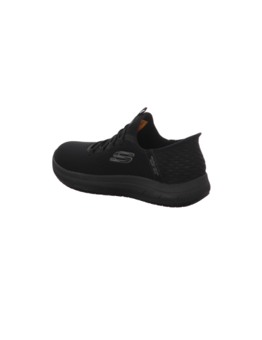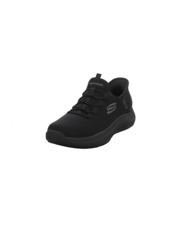 Leinenslipper in schwarz mit Slip-ins Funktion und einer Gummisohle.