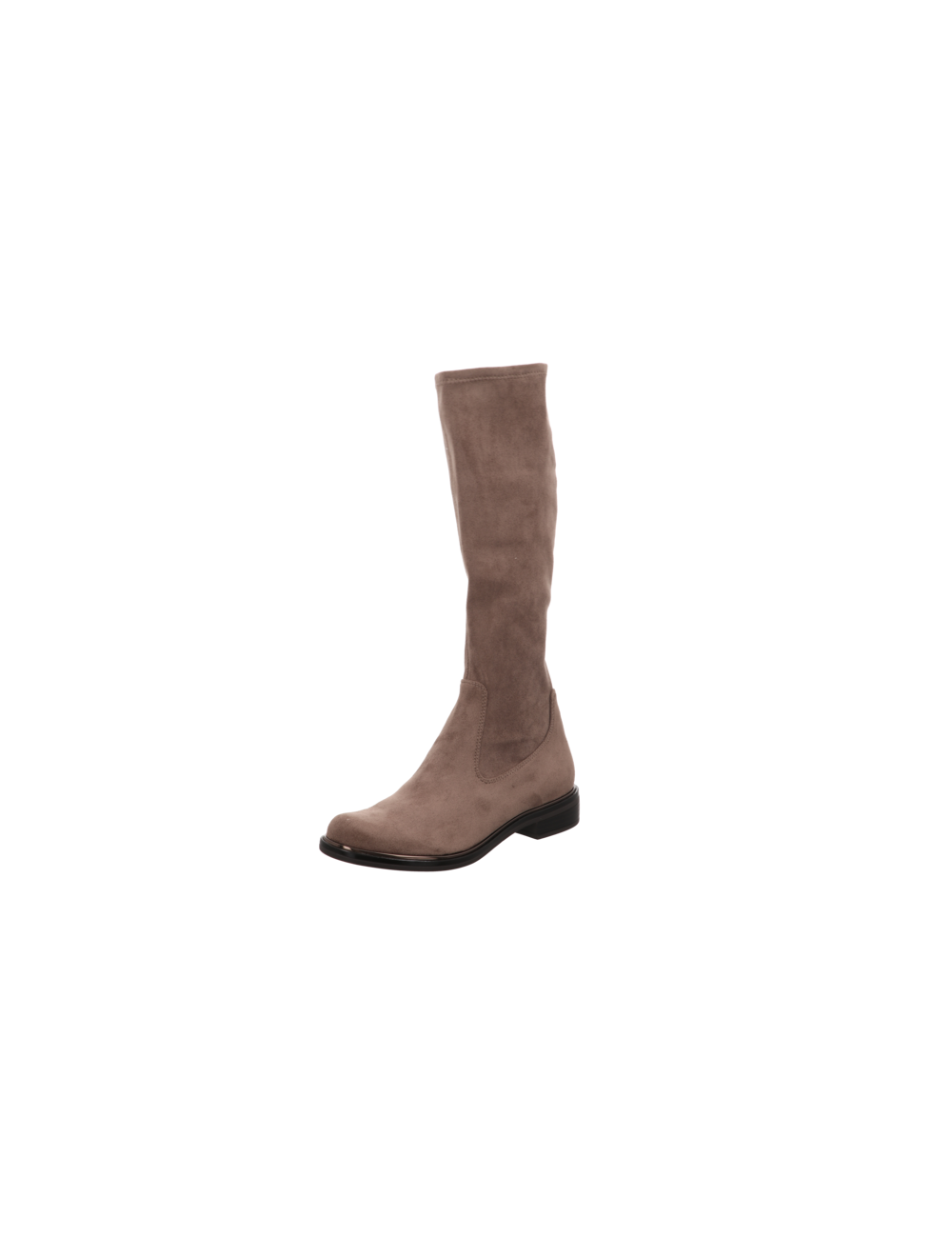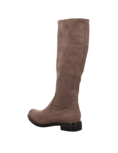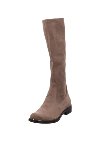 Stretchstiefel in beiger Rauhlederoptik mit Gummisohle.