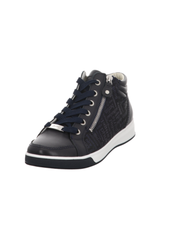 Schnürstiefelette in blauen Glattleder mit Gummisohle.