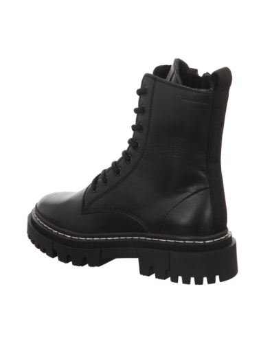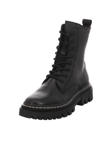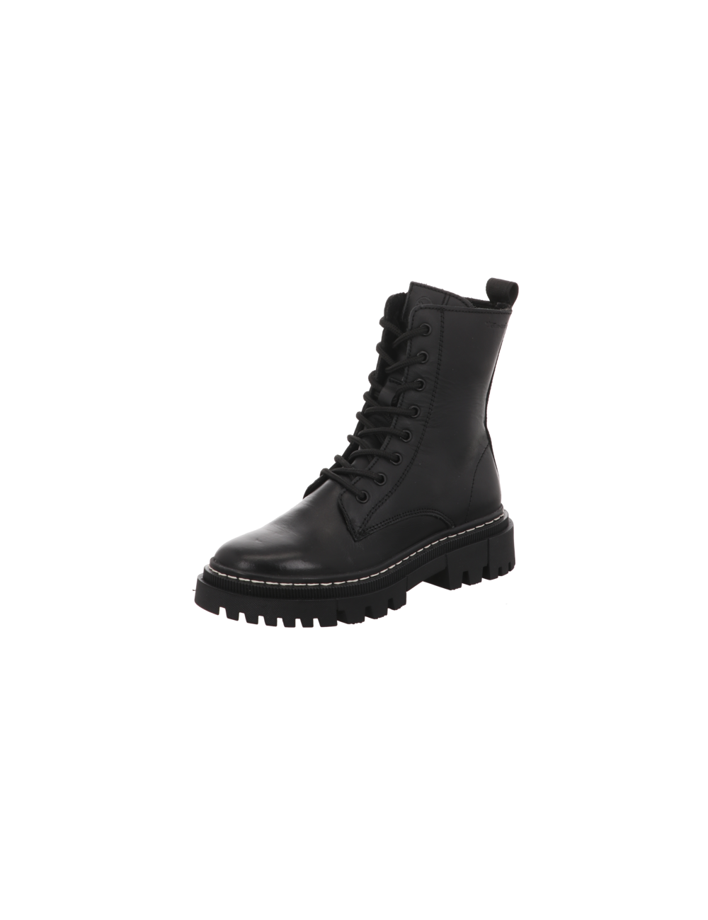 Schnürstiefelette in schwarzen Glattleder mit Gumisohle.