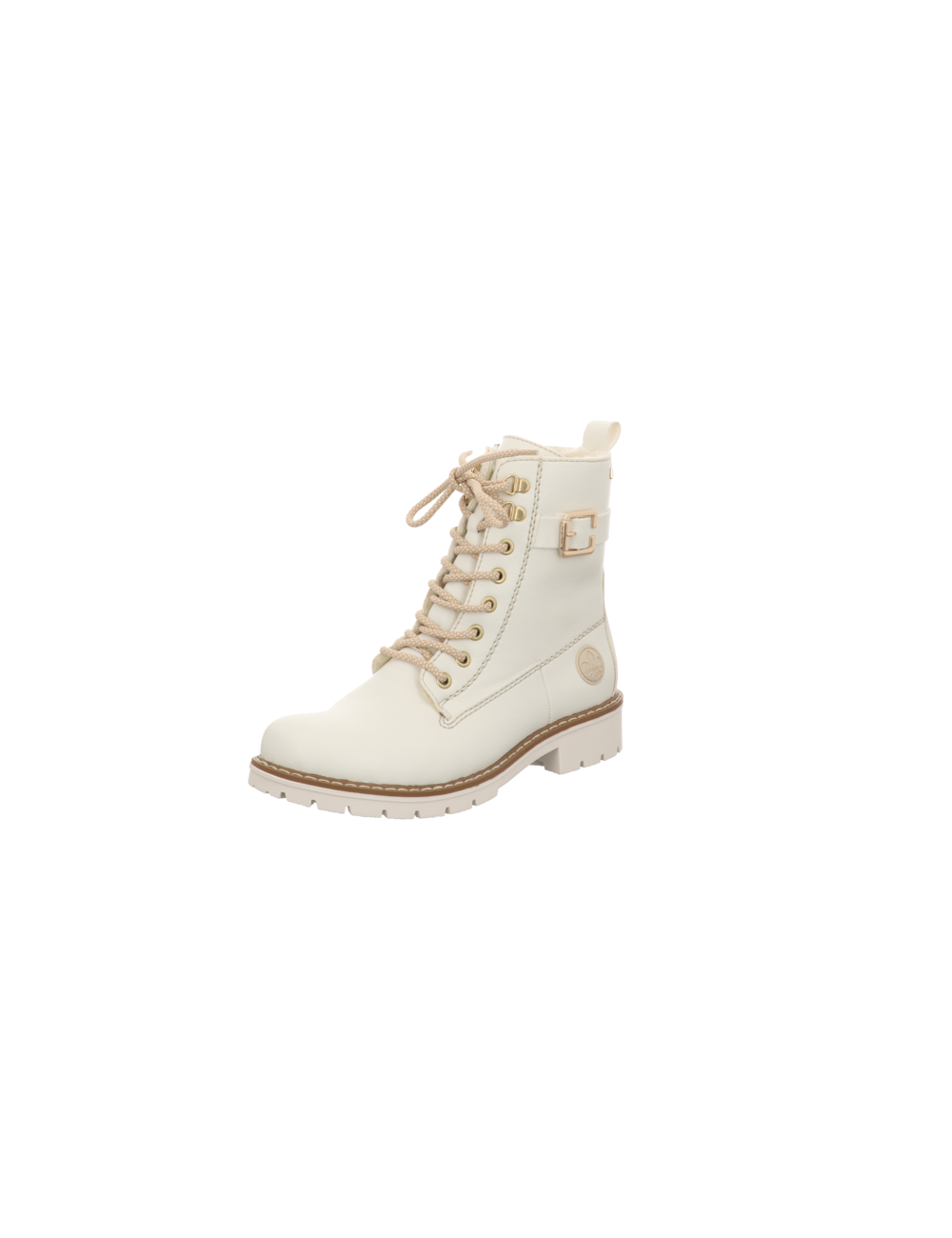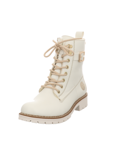 Schnürstiefelette in beiger Glattlederoptik mit Gummisohle.