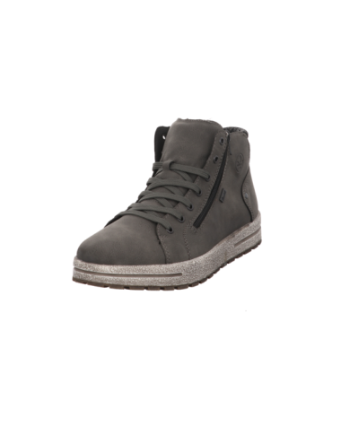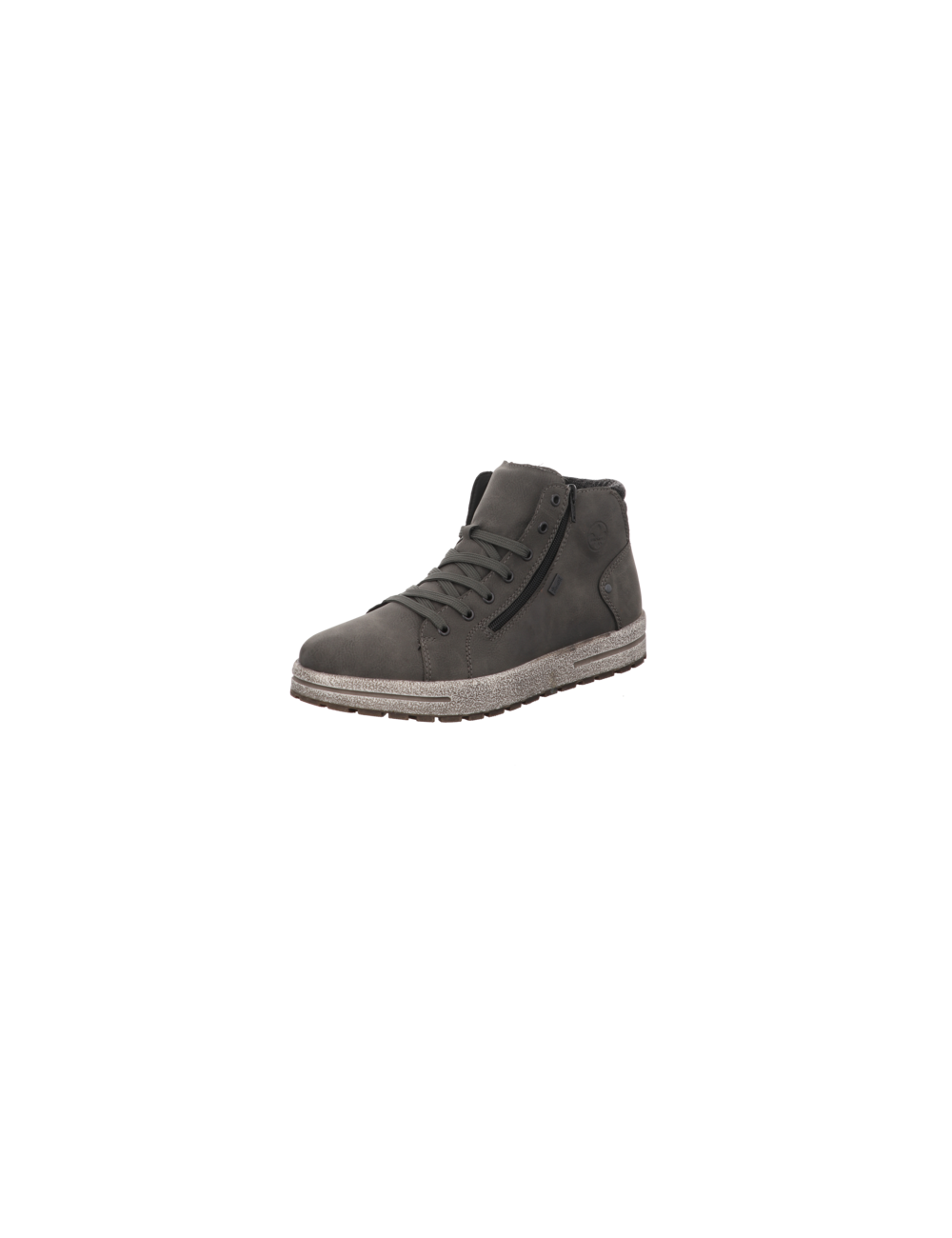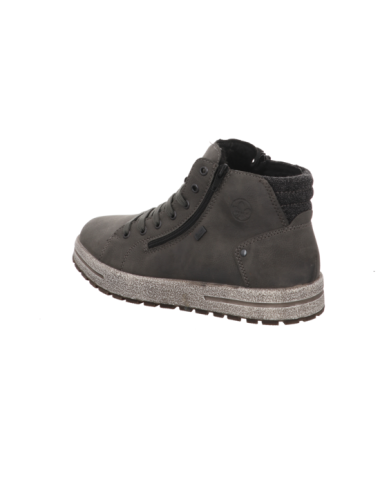 Schnürstiefelette in grauer Rauhlederoptik mit Gummisohle.