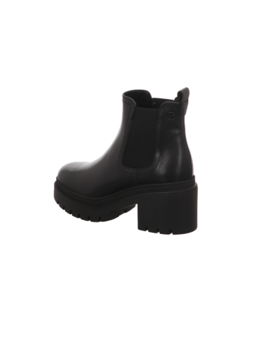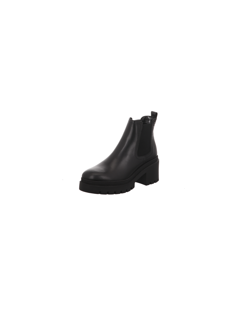 Plateaustiefelette in schwarzen Glattleder mit einer Absatzhöhe von ca. 6 cm und Gummisohle.