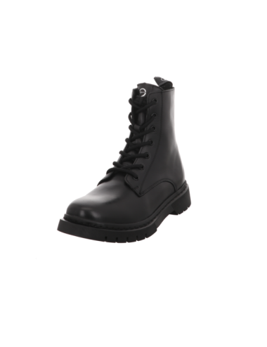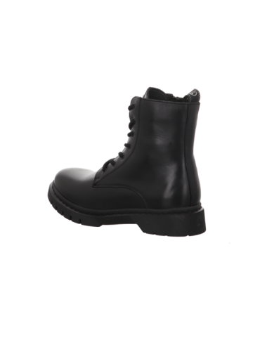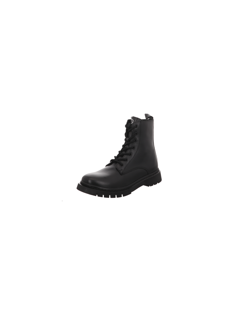 Schnürstiefelette in schwarzen Glattleder mit Gummisohle.