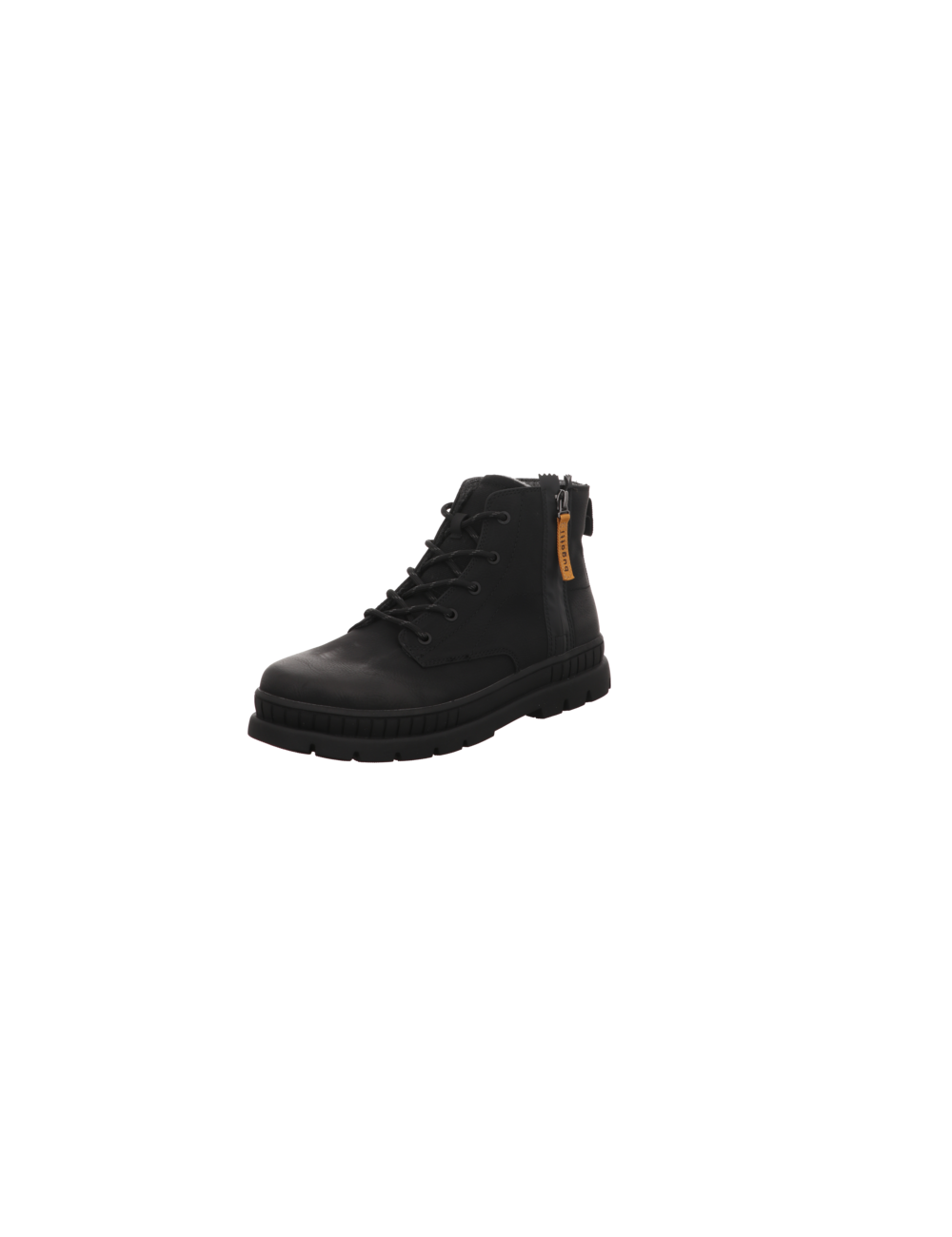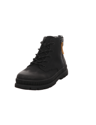 Schnürstiefelette in schwarzen Rauhleder mit Gummisohle.