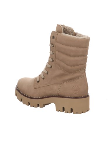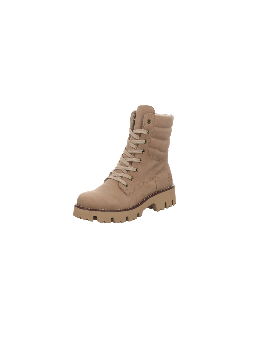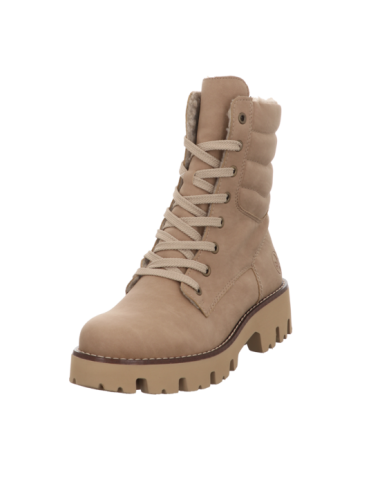 Schnürstiefelette in beiger Rauhlederoptik mit Gummisohle.