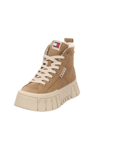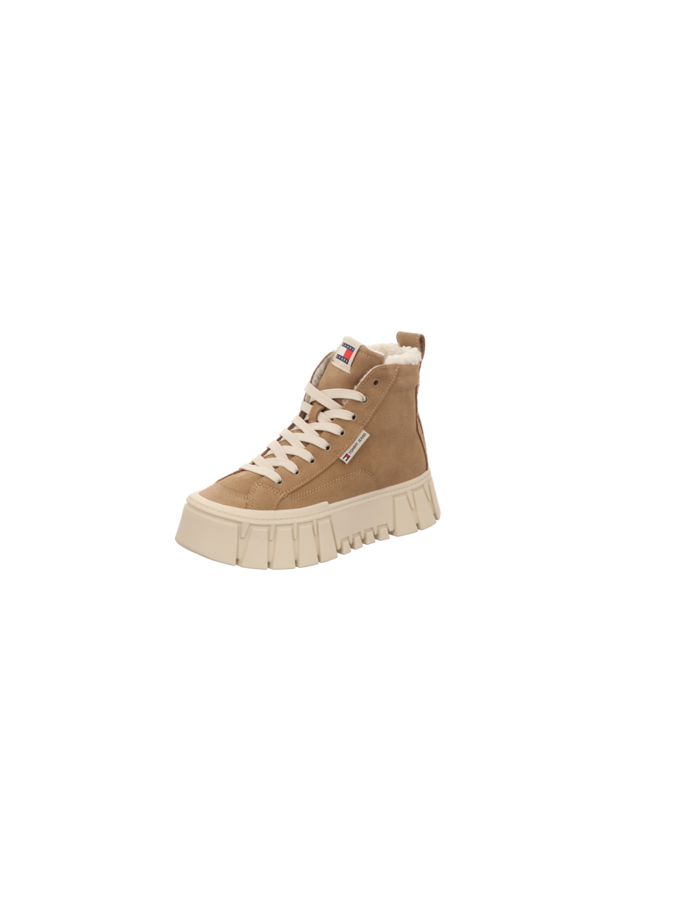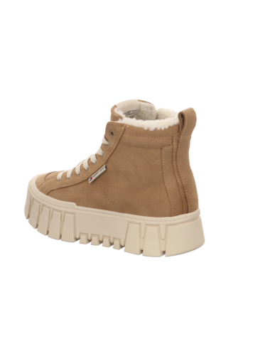 Schnürstiefelette in beigen Rauhleder mit Plateaugummisohle.