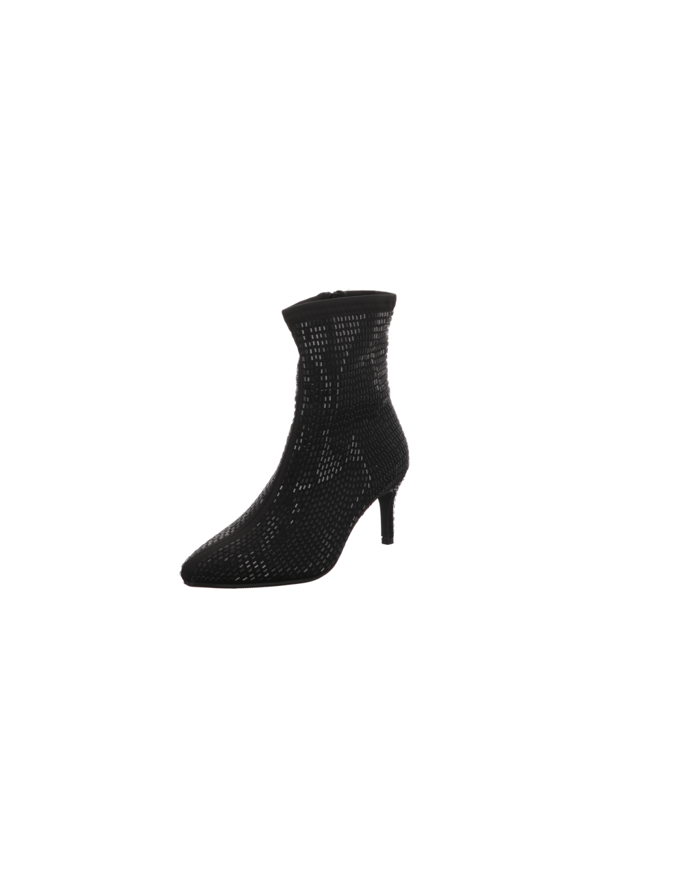 Stiefelette in schwarzen Textil mit einer Absatzhöhe von ca. 7 cm und Pu - Sohe