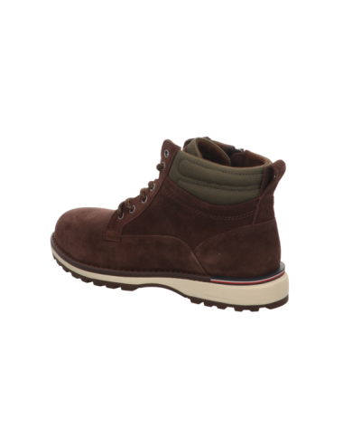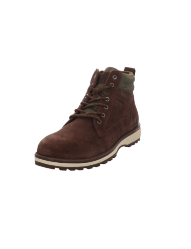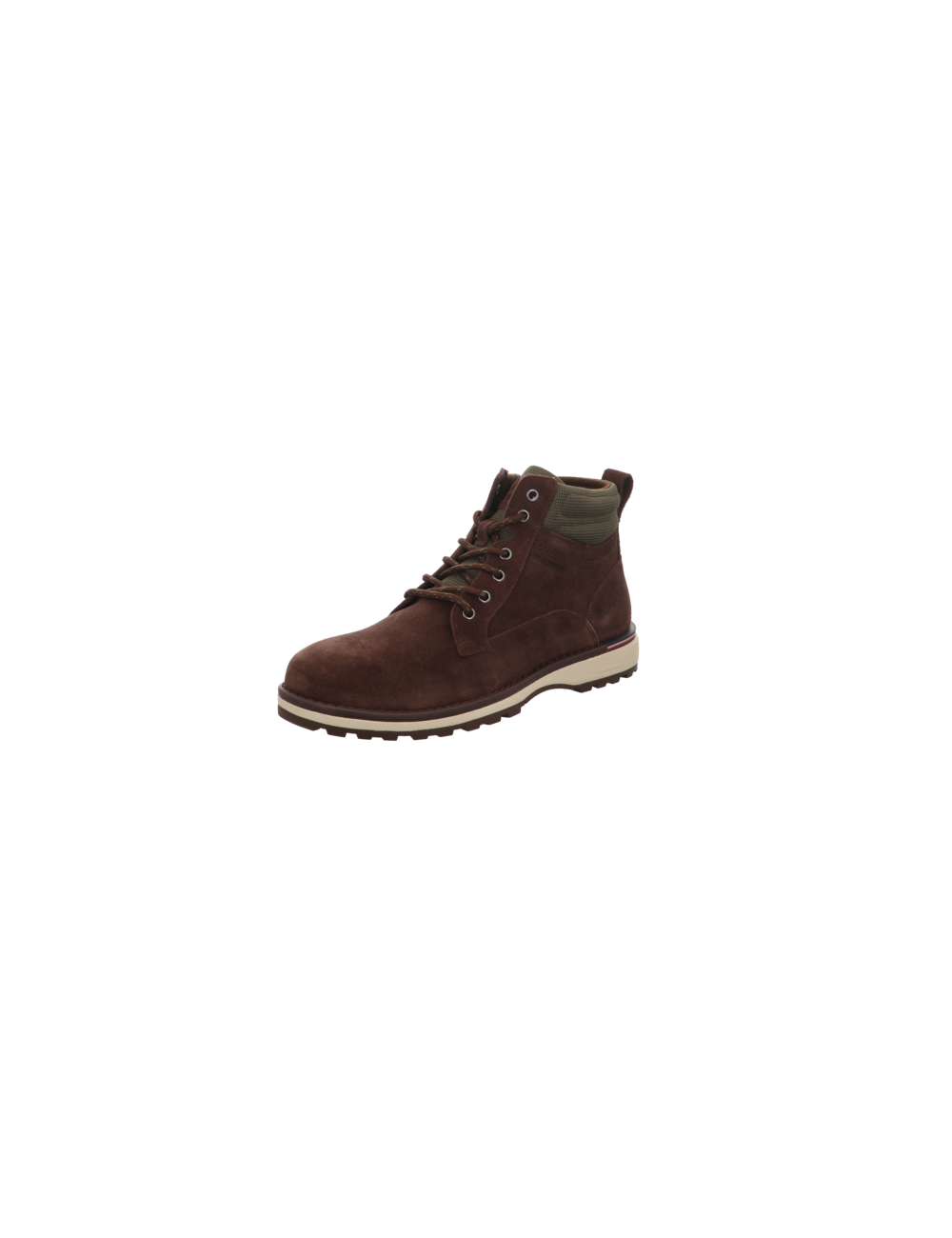 Schnürstiefelette in dunkelbraunen Rauhleder mit Gummisohle.