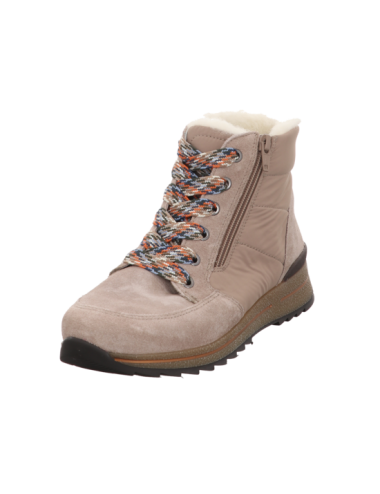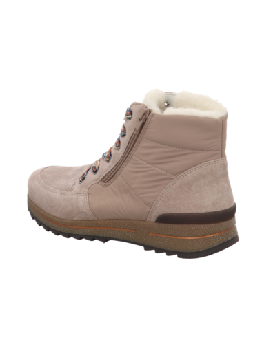 Schnürstiefelette in beigen Rauhleder mit Gummisohle.