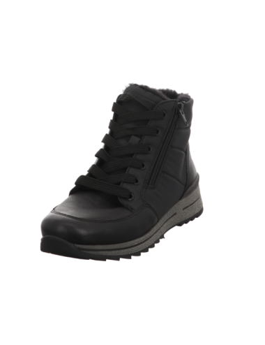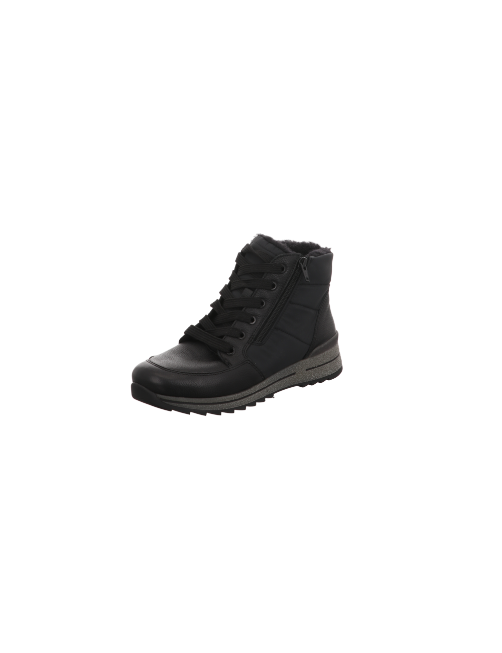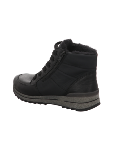 Schnürstiefelette in schwarzen Glattleder mit Gummisohle.