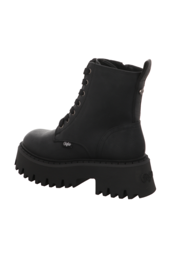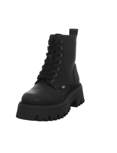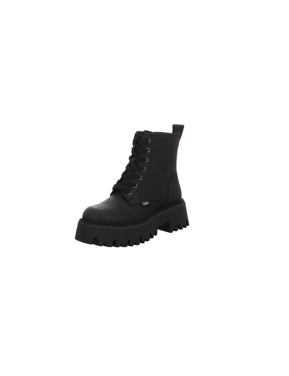 Schnürstiefelette in schwarzer Glattlederoptik mit Gummisohle.
