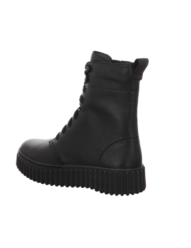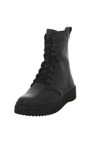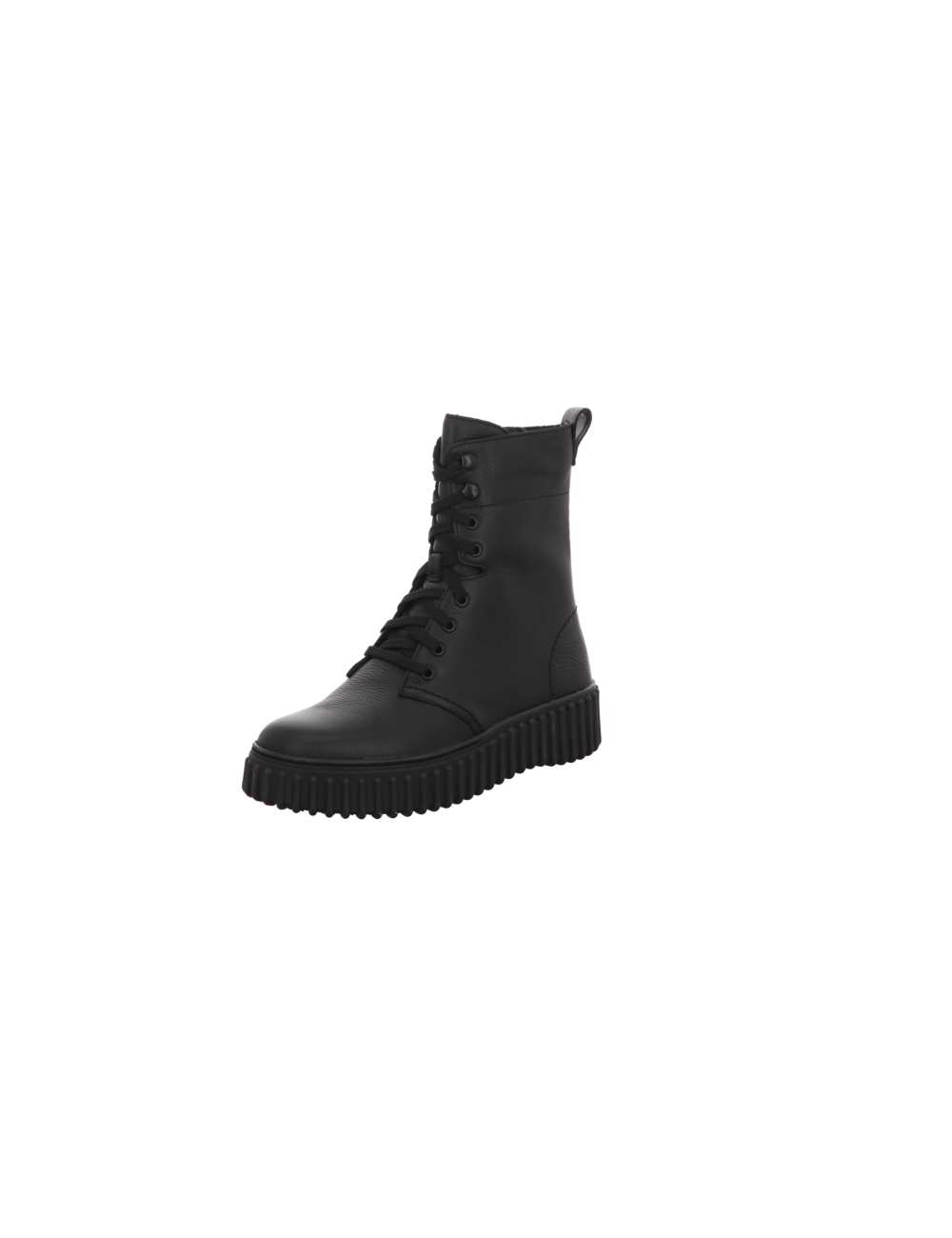 Schnürstiefelette in schwarzen Glattleder mit Gummisohle.