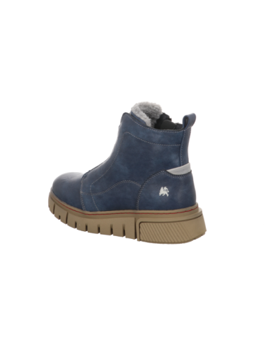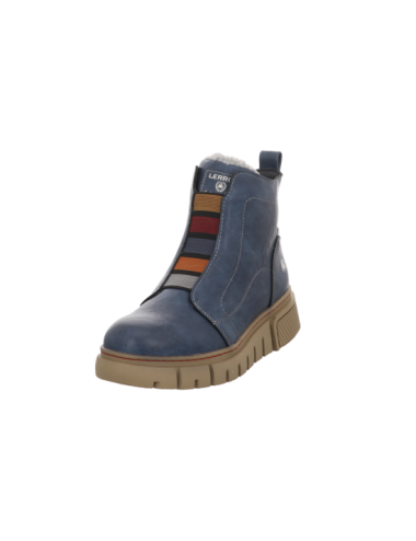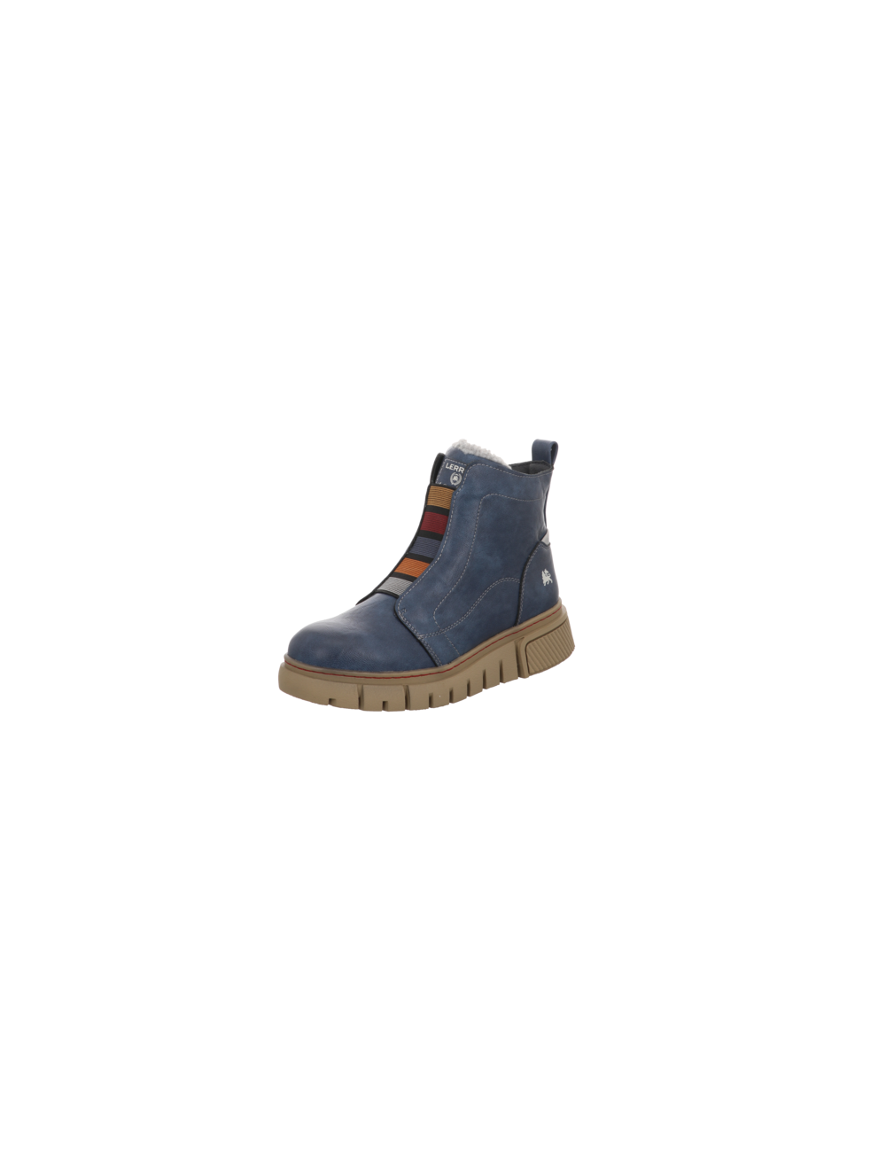 Schnürstiefelette in blauer Glattlederoptik mit Gummisohle.