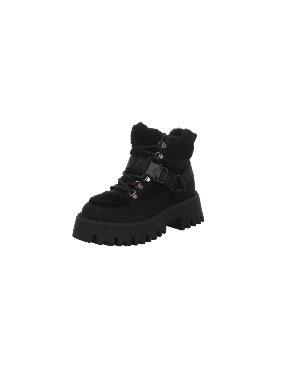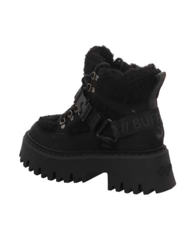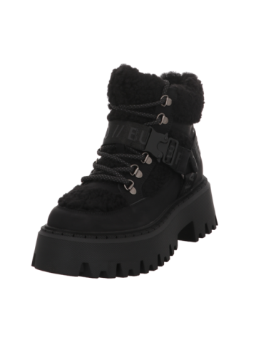 Schnürstiefelette in schwarzen Rauhleder mit Plateaugummisohle.