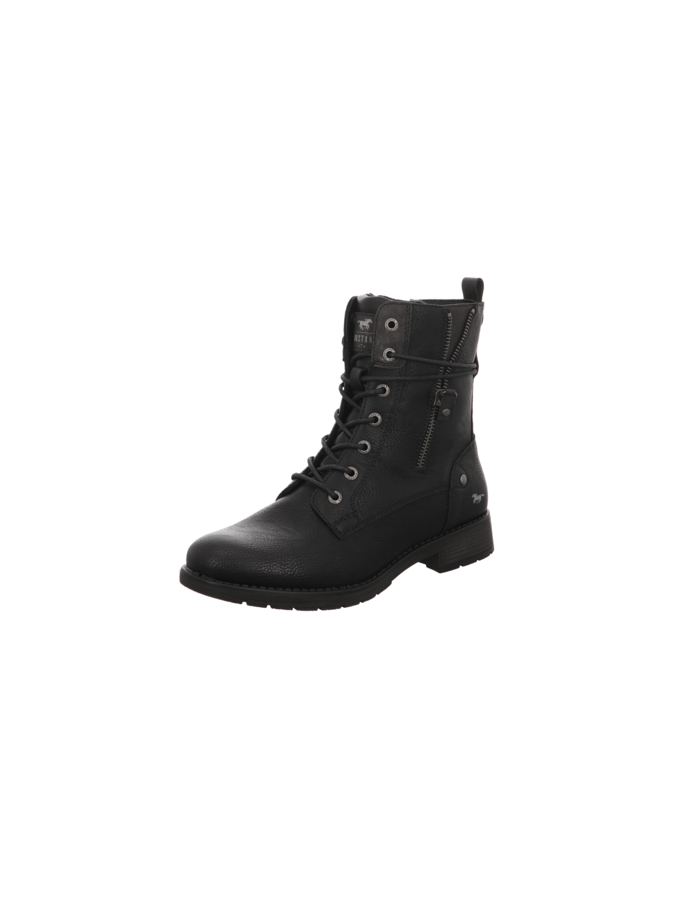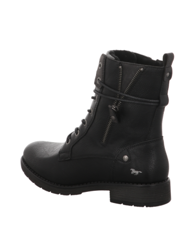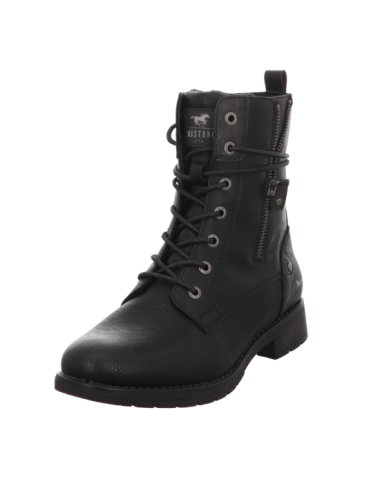 Schnürstiefelette in schwarzer Glattlederoptik mit Gummisohle.