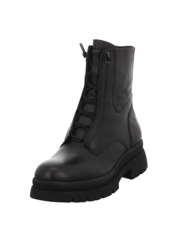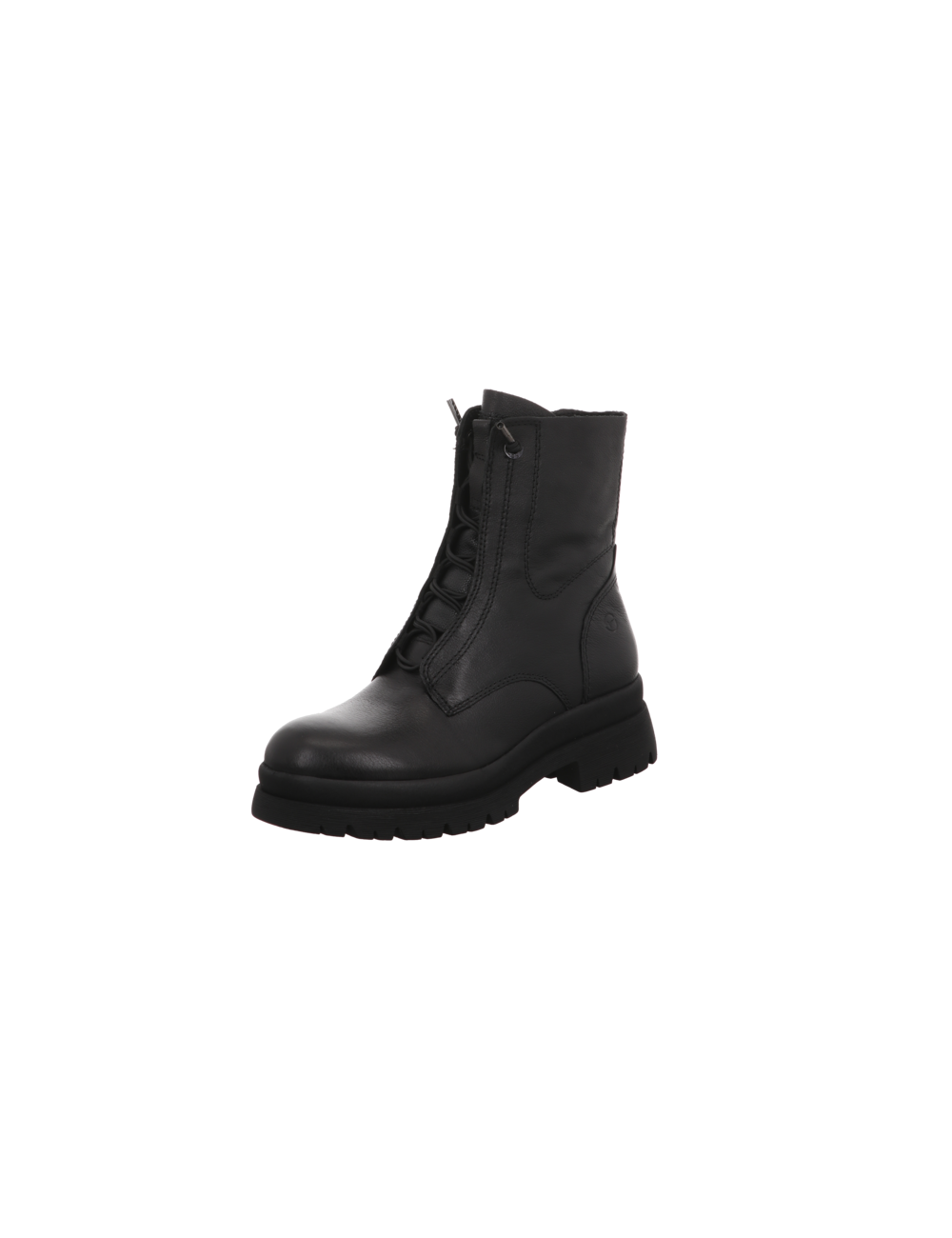 Schnürstiefelette in schwarzen Glattleder mit Gummisohle.