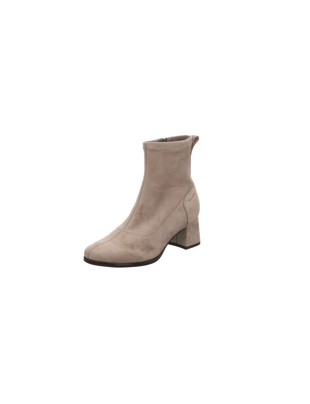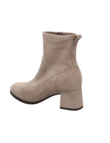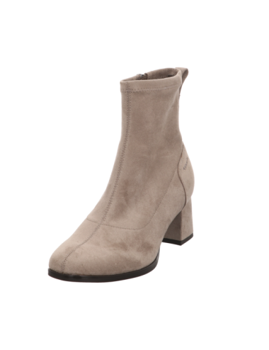 Stiefelette in beiger Rauhlederoptik mit einer Absazhöhe von ca. 5,5 cm und Gummisohle.