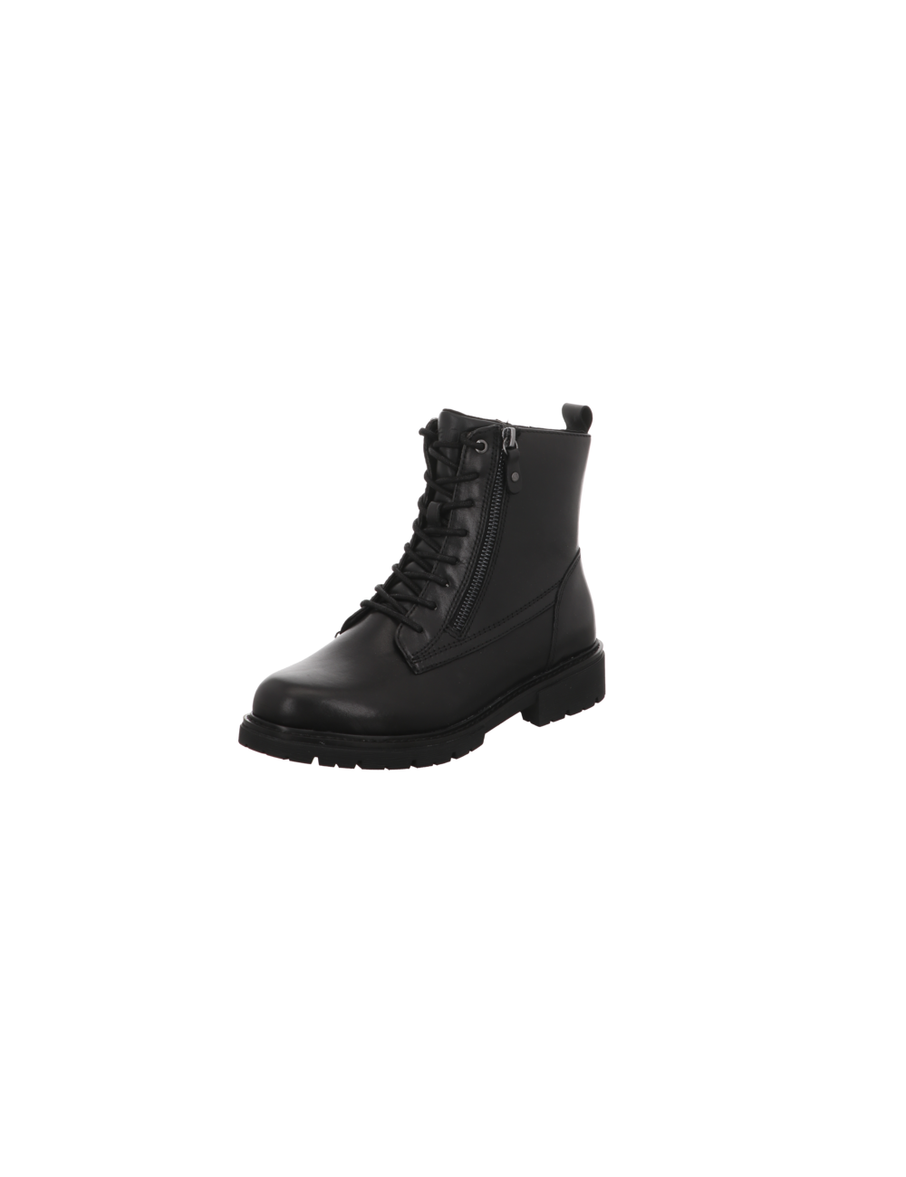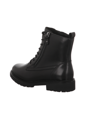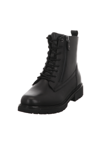 Schnürstiefelette in schwarzen Glattleder mit Gummisohle.