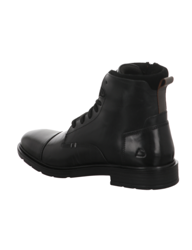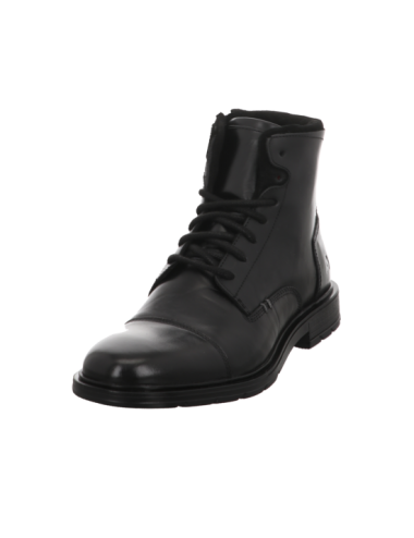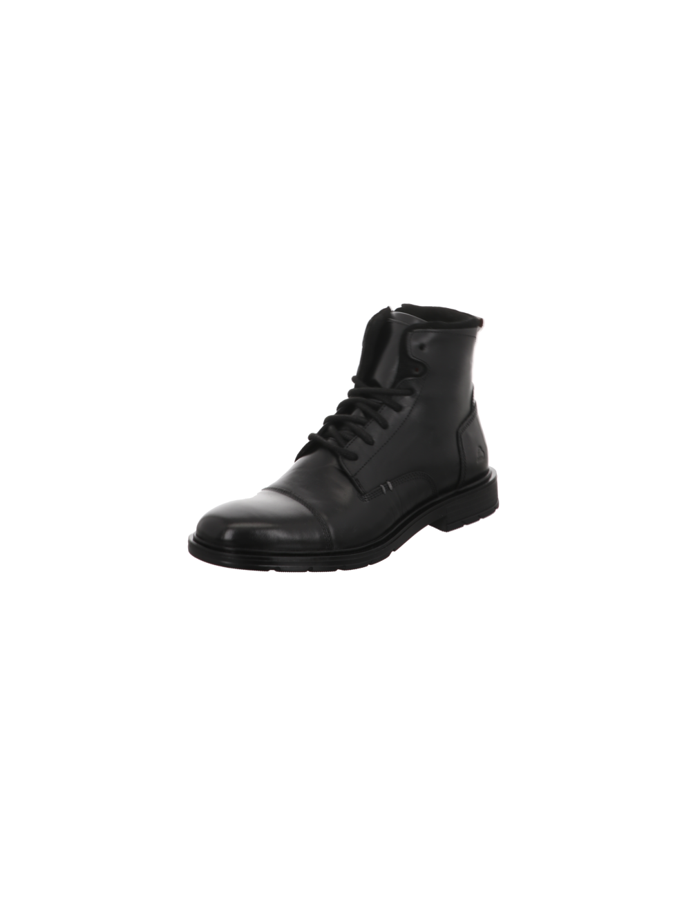 Schnürstiefelette in schwarzen Glattleder mit Gummisohle.