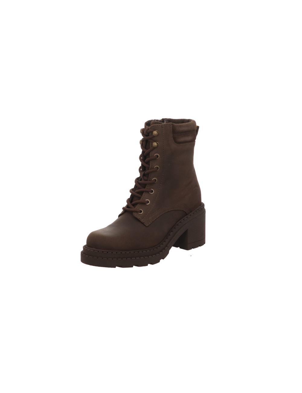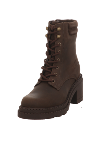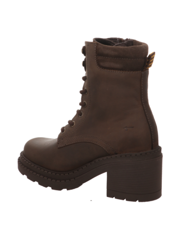 Schürstiefelette in braunen Rauhleder mit eier Absatzhöhe von ca. 6,5 cm und Gummisohle.